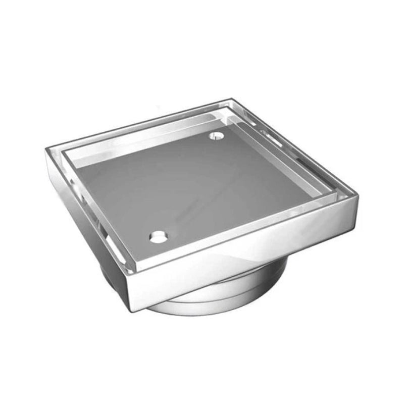This high-quality floor grate offers a unique design that seamlessly blends with the surrounding floor tiles, providing a sophisticated look to your bathroom.