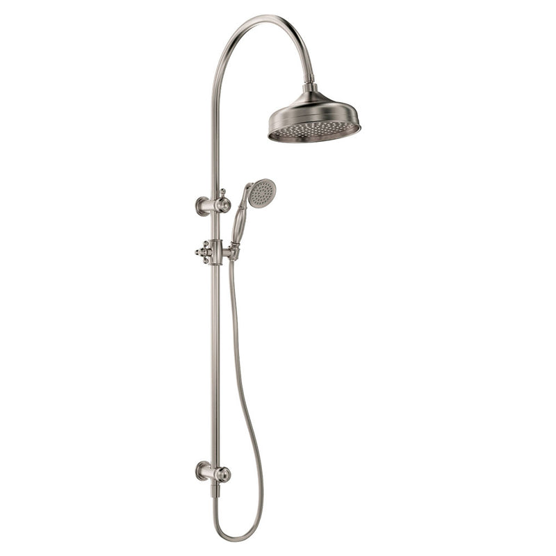 The Fienza Lillian Twin Shower in Brushed Nickel finish is an exquisite addition to your bathroom. It offers a luxurious showering experience with its twin shower heads, ensuring complete coverage and ultimate relaxation. The Brushed Nickel finish adds a touch of elegance and sophistication to your bathroom décor, while the durable construction guarantees long-lasting performance.