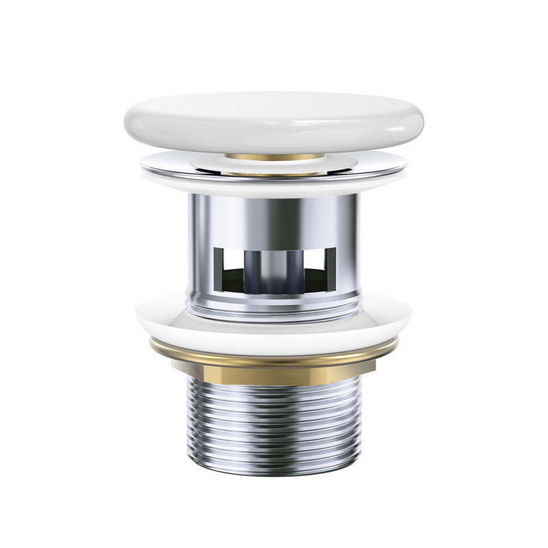 Fienza Pop-Up 32mm Basin Waste with Overflow - Gloss White Flat Ceramic Cap - WAS58FGW