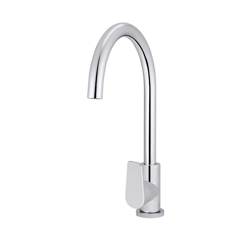 The Polished Chrome Kitchen Mixer with a paddle handle perfectly blends style and practicality, boasting a solid brass construction and convenient single-handle mixer. Explore positioning the handle front-facing or on either side to customise and complement your interior. This mixer can be installed into benchtops up to 45mm in thickness