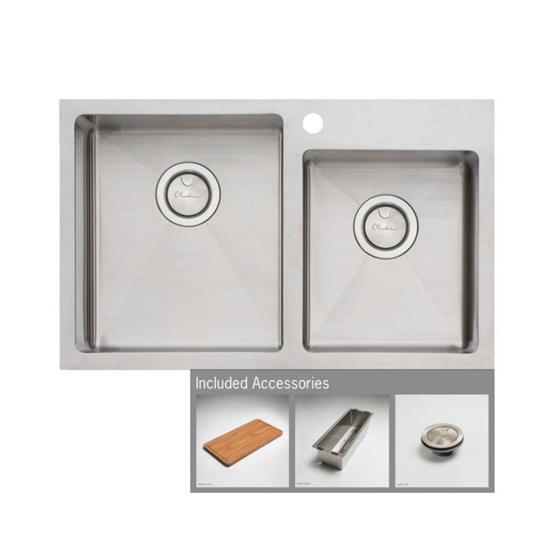 The Apollo 1 and 3/4 Offset Bowl Sink is ideal for those who enjoy a larger main bowl, with the practical addition of a 3/4 bowl. This model is complete with integrated colander and bamboo preparation board which fit comfortably within the main bowl.