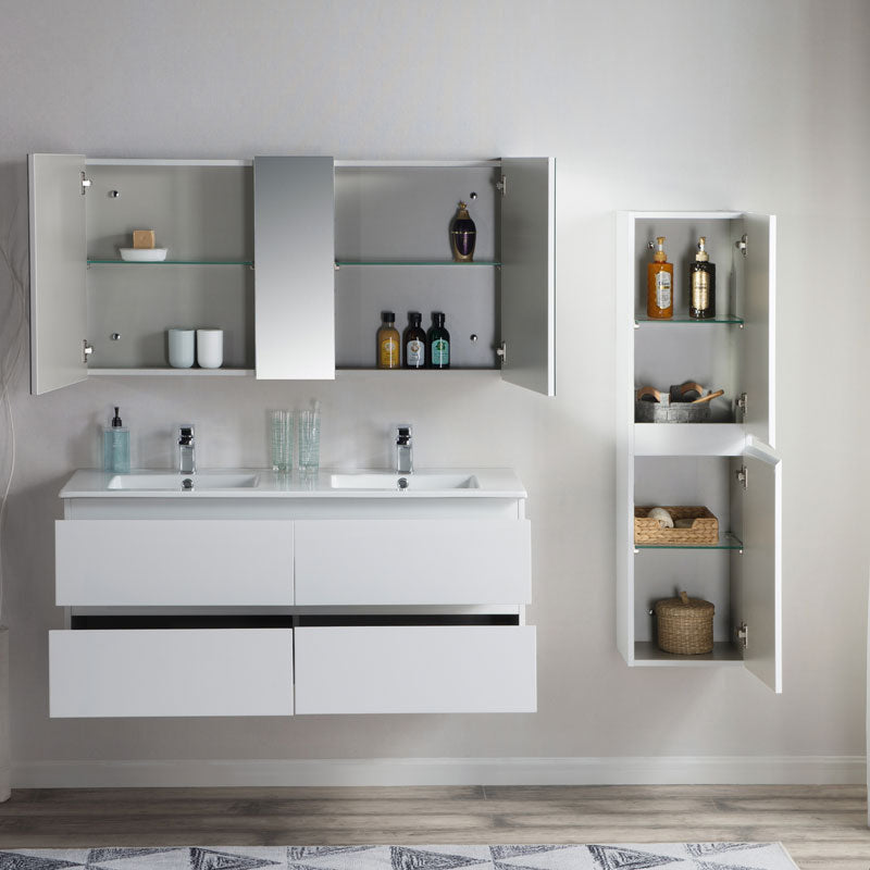 PURE BIANCO 1200 WALL MOUNTED CABINET WITH DOUBLE CERAMIC TOP