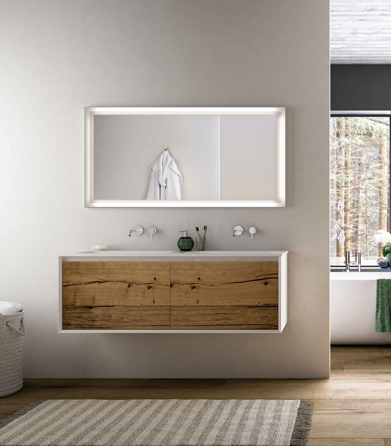 The Iks 1200 Wall Mounted Cabinet provides both optimum craftmanship and luxurious design. The premium vintage oak wood with black split front joinery ensures long lasting durability whilst the anthracite internal finish provides a stylish and sophisticated vanity.