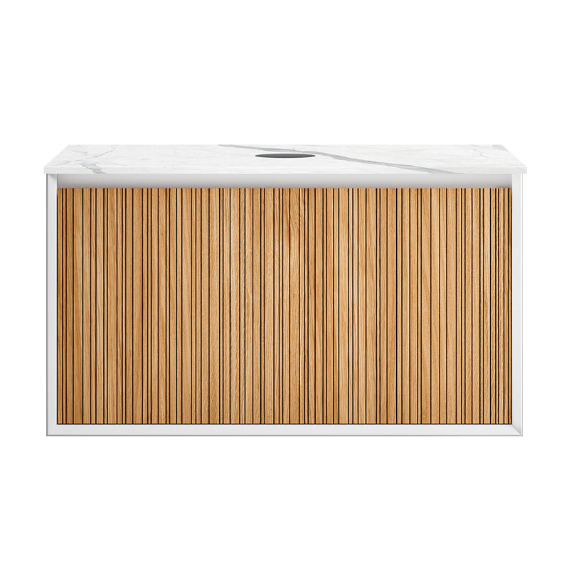 Parisi Jazz 900 Wall Hung Vanity Rovere Naturale Matte White with Italian Porcelain Top - Statuario - FV-JZ-900MW-RN-ST