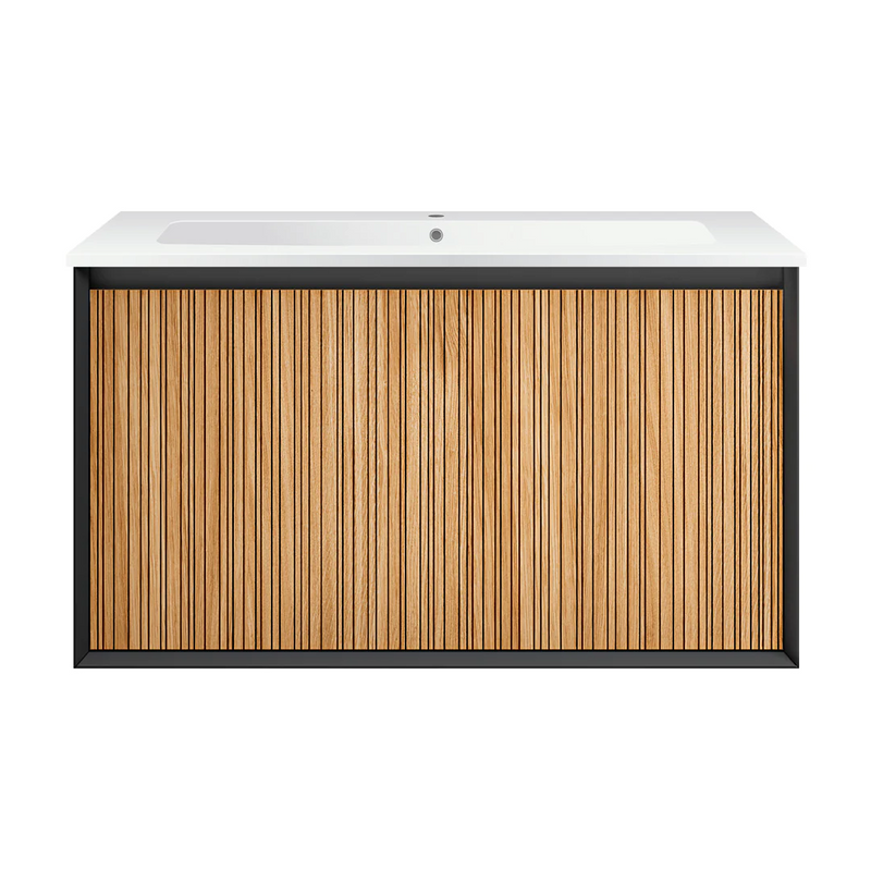 Parisi Jazz 900mm Wall Hung Matte Black Vanity - Rovere Naturale - JZ-900MB-RN
