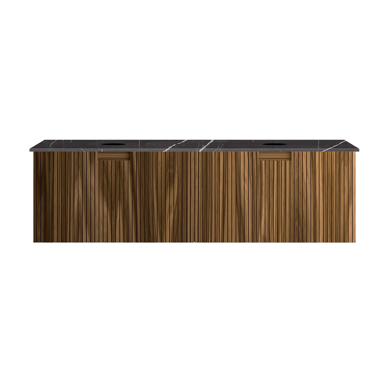 Parisi Riga+My Top 1400 Wall Mounted Cabinet with Porcelain Top - Black Walnut - Sahara Noir Top - FV-RG-1400-BW-SAH