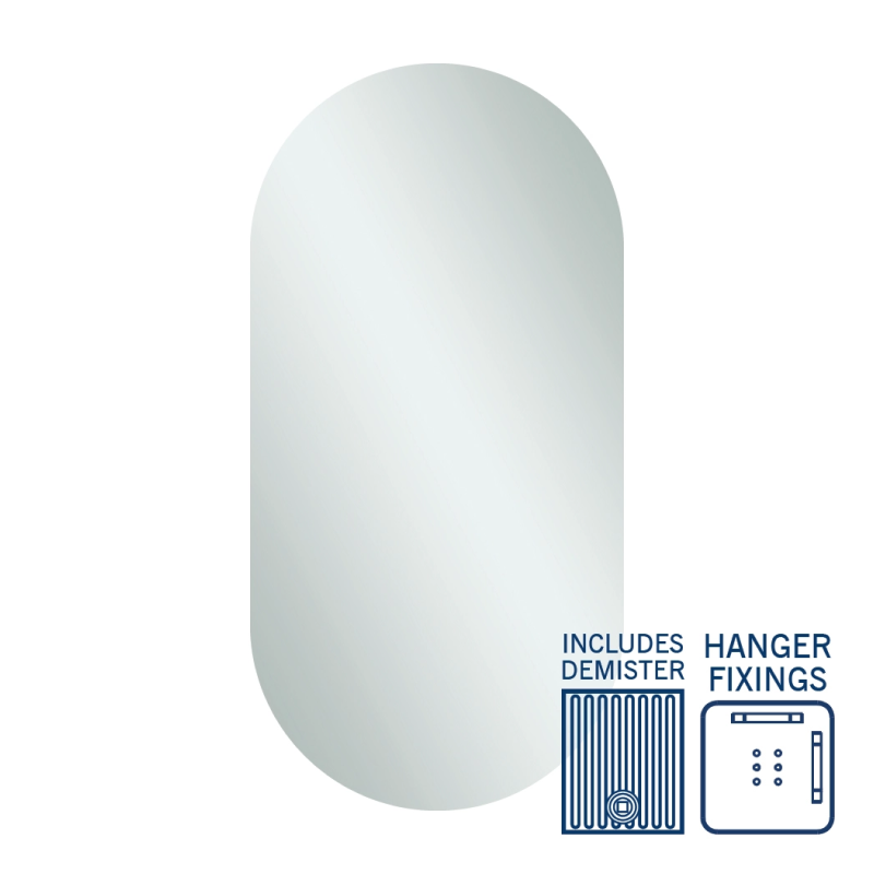 The DP5010HND Pill Shape Mirror from our Duke Range is made to fit your design, space and budget. These mirrors are backed by our 2 year warranty. The mirrors feature a commercial strength vinyl backing and features metal hangers for easy installation. The mirrors are copper-free and edge sealed to ensure the mirrors does not develop foil creep on the edge.