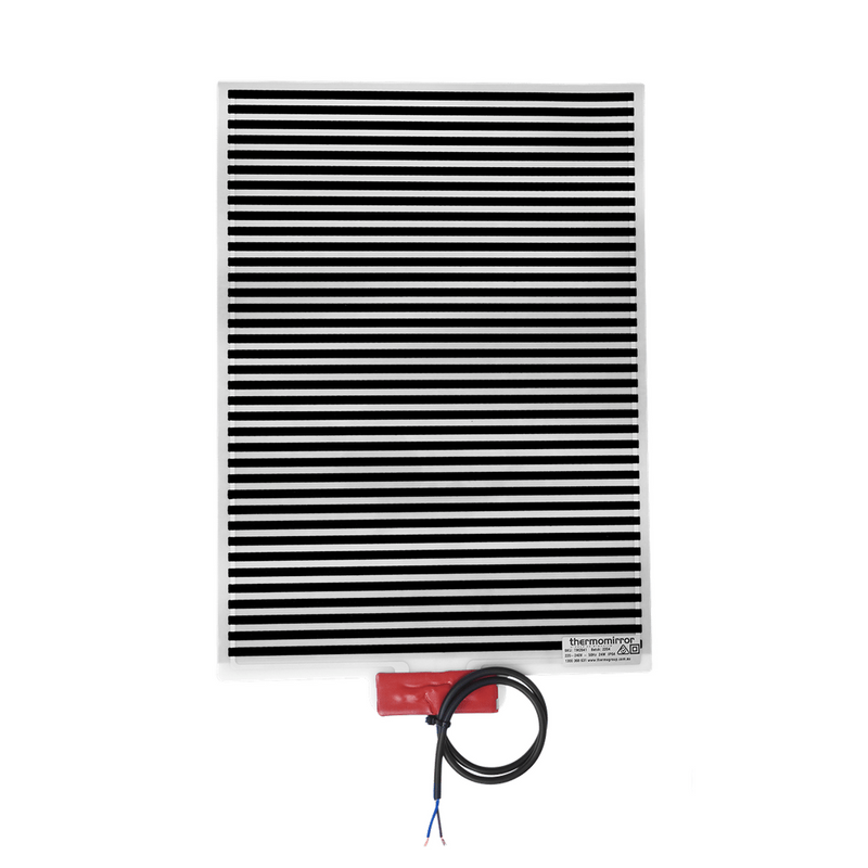 Thermomirror Demister Pads are an ultra-thin demister pad that provides a clear and condensation-free mirror even after a hot bath or shower. These pads are fully self-adhesive for attaching to the back of your mirror and have a single 240V connection point for easy installation. These demister pads are covered by a 10 year warranty. The TM2828 is 280x410mm and is suitable for mirrors of 380x510mm or larger. It is designed to fit on narrow, tall mirrors. For more details see the FAQ section. Typically a mirror fogs up due to the difference in temperature of the mirror and the temperature in the bathroom. The bathroom is warm from the shower or bath whilst the mirror is cold and this difference in temperature causes it to fog up. The mirror defogger warms the mirror to reduce the difference in temperature ensuring a steam free mirror in the bathroom.