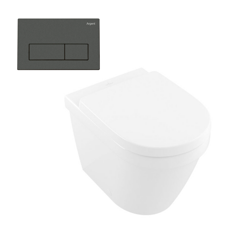Villeroy & Boch Architectura 2.0 DirectFlush Wall Faced Toilet incl/Argent Cistern Package - Rec Kubic Gun Metal - 5690R101S4DB + IN38905 + IN38785GM